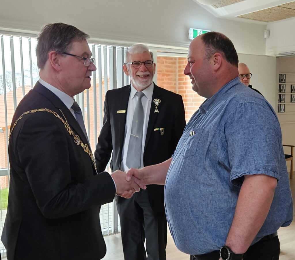 Ved den efterfølgende reception i samlingslokalet lykønskede logemester i logen Veritas Claus Lunde Johnny Olesen med prisen og takkede Storlogerådet fordi, man nikkede ja, da Johnnys navn blev nævnt, og han takkede logen Caritas, fordi man havde åbnet dørene for arrangementet, da logen Veritas` egne lokaler på Ølgodvej 1 i Aalborg ikke var disponible.